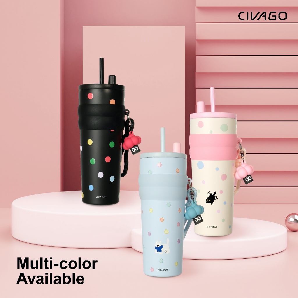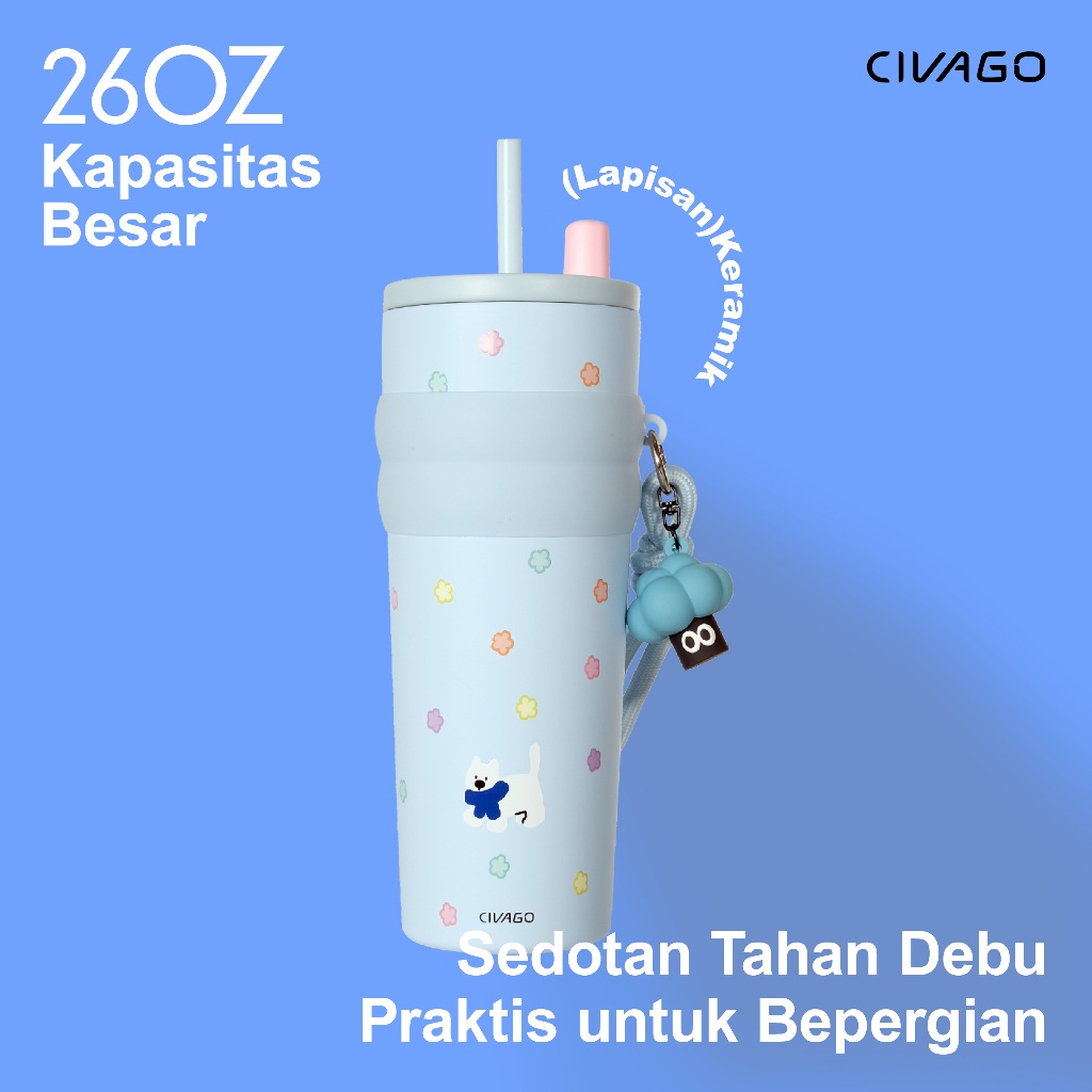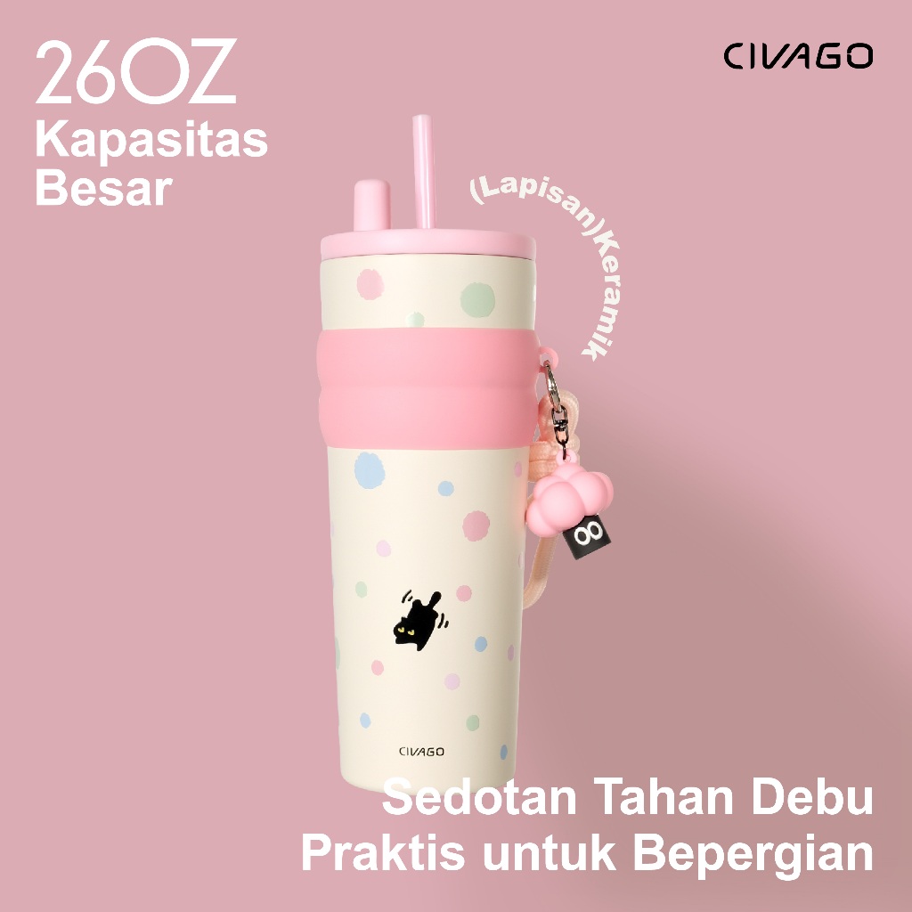 Housebrand tumbler CIVAGO(26oz/768ml)Tumbler Kopi Stainless Steel Tahan Panas dengan Lapisan Keramik dan Tutup Seri Polk