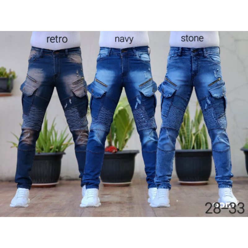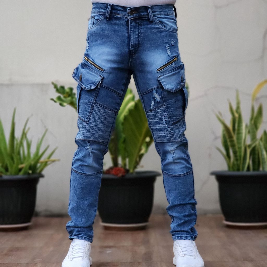 Celana Pria Jeans Sobek Puring Bikers Boriel Celana Biker