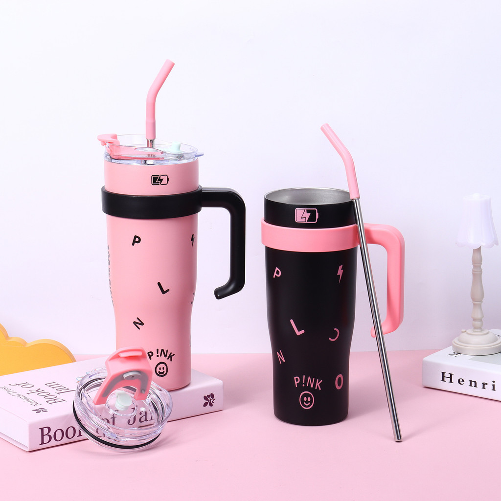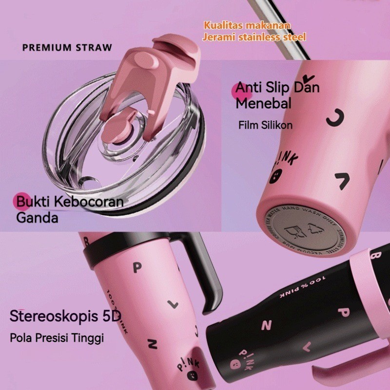 Housebrand tumbler 1200ml Tumbler Ice Stainless Kapasitas Besar-Tumbler Pink Dengan Sedotan-Thermos Anti Tumpah-Original