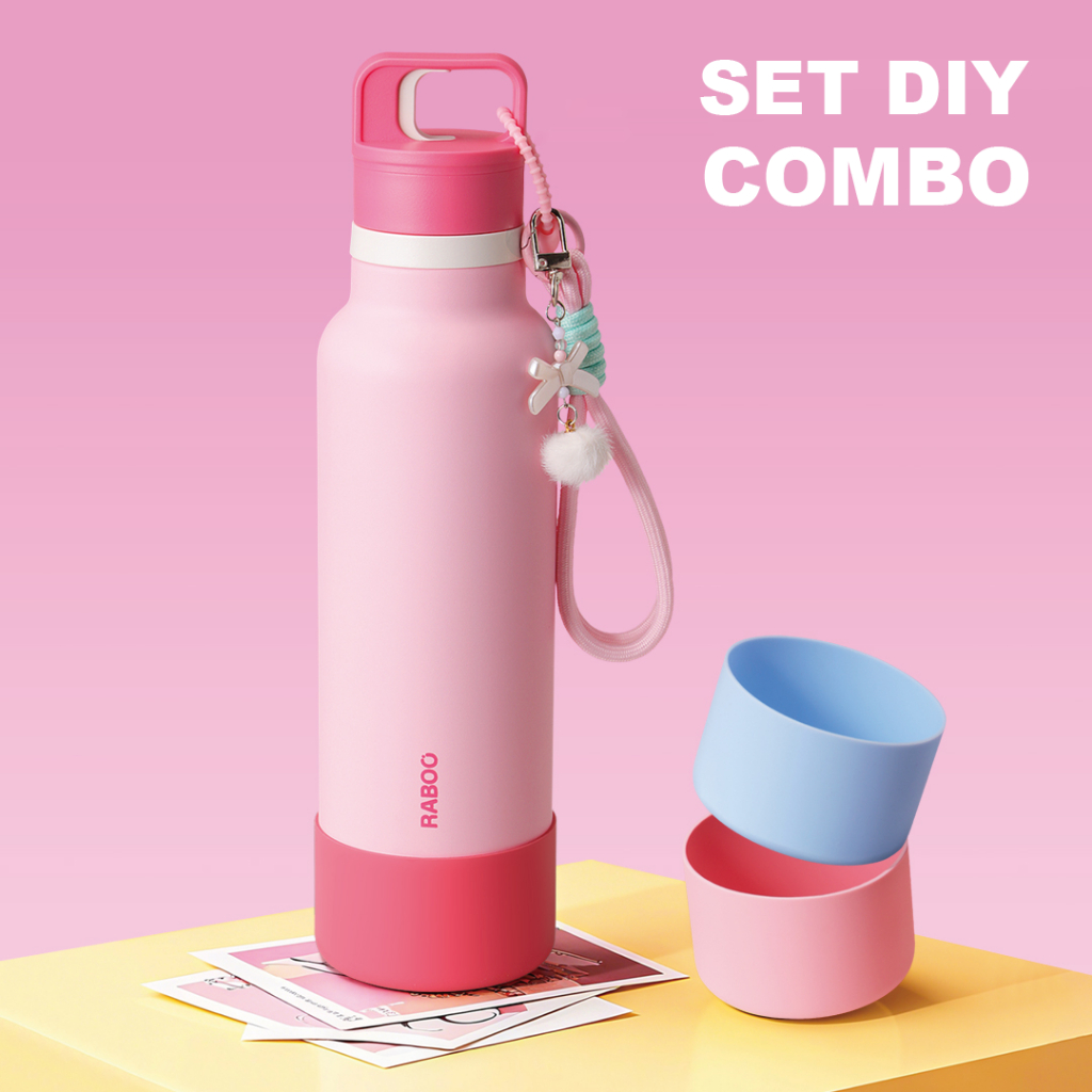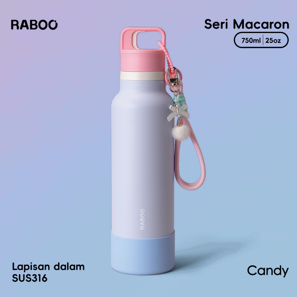 Housebrand tumbler RABOO Tumbler Olahraga Maron 750ML , Satu-Klik untuk Buka, SUS 316 Stainless, Botol Termos Trendi dan