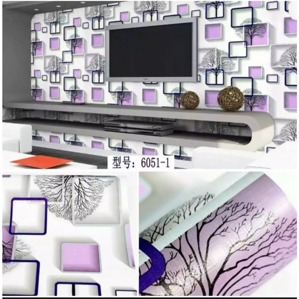 Wallpaper Dinding Motif Wallpaper Stiker Motif KOTAK 3D Ungu GH046 45cmx90cm-100cm Wallpaper Kamar Tidur Aesthetic