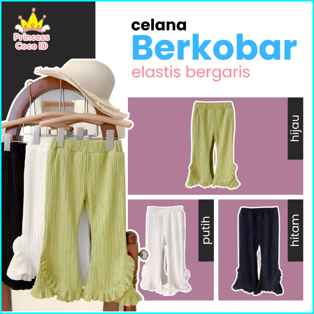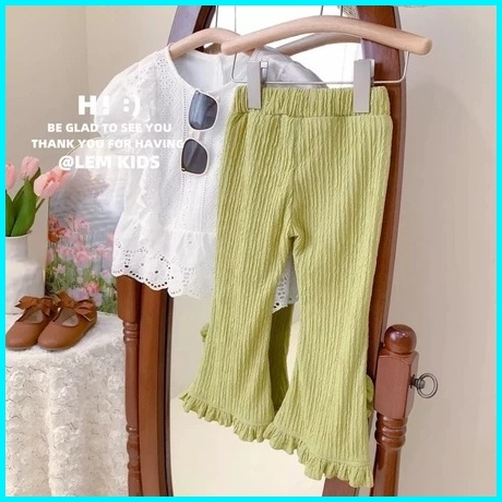 Princesscoco 2-11 Tahun Celana Berkobar Trendi Anak Perempuan Elastisitas Tekstur Bergaris Tiga Dimensi Renda Manis Gaya