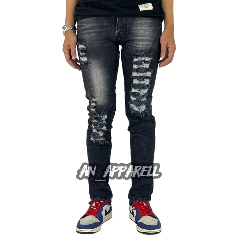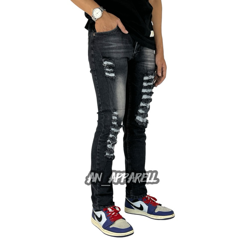 Celana Jeans Sobek Pria Tidak Tembus Model Starboy Skinny Stretch Melar Ukuran 28 - 34
