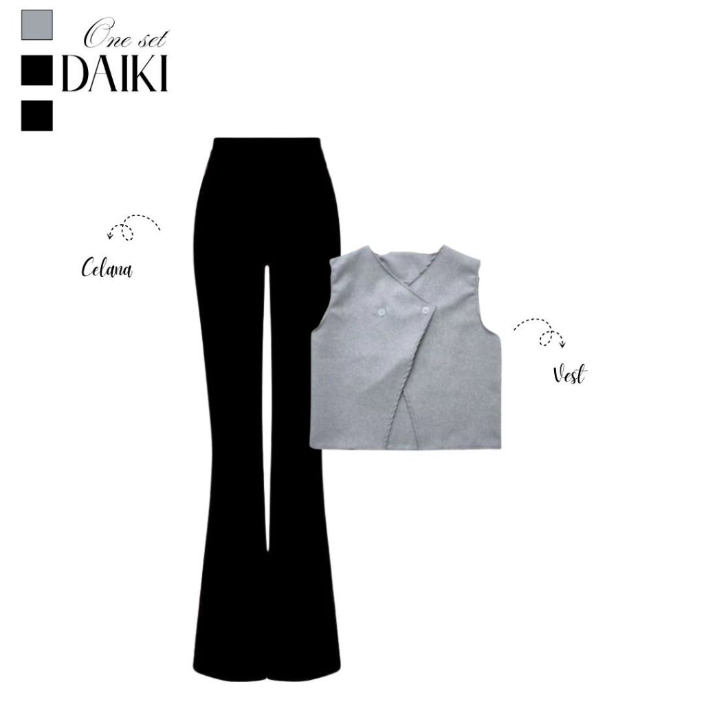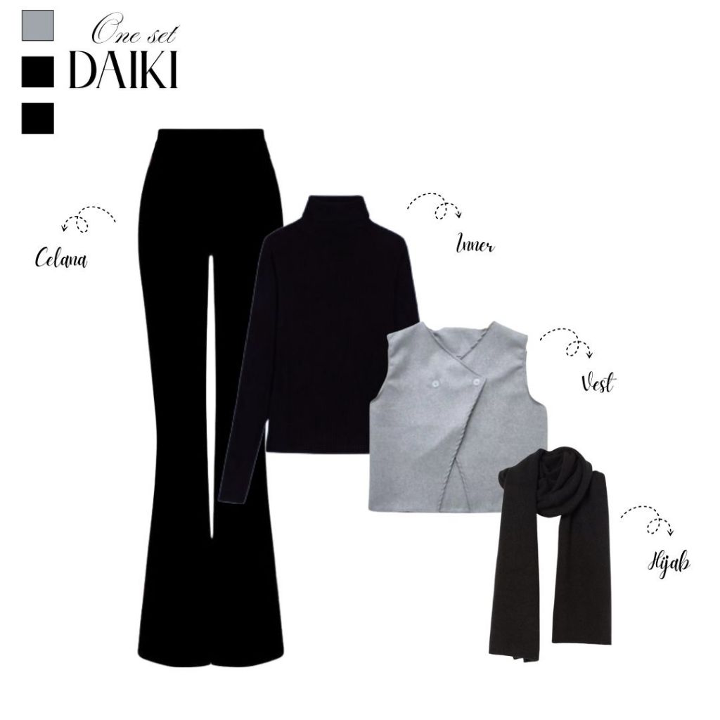 Daiki One set Wanita Casual (Manset,Vest Silang, Cutbray, Square Hijab) Setelan Ouit Kekinian Ootd