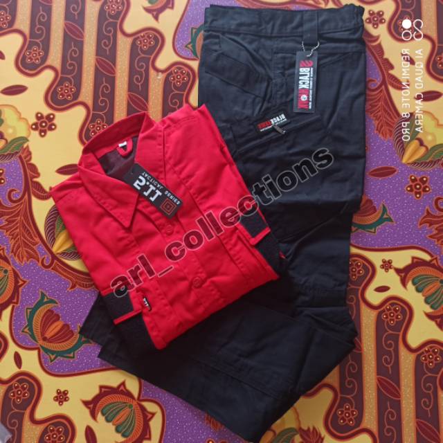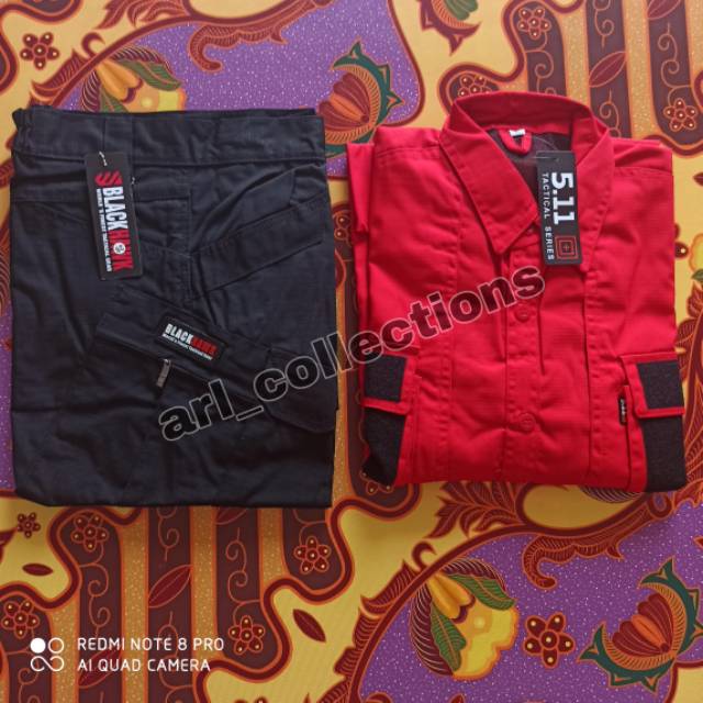 SETELAN SATU SET CELANA HITAM DAN KEMEJA TACTICAL MERAH /RESCUE/DAMKAR/ORGANISASI/PDIP