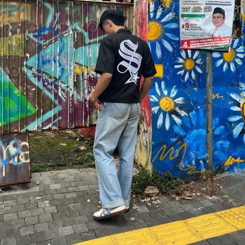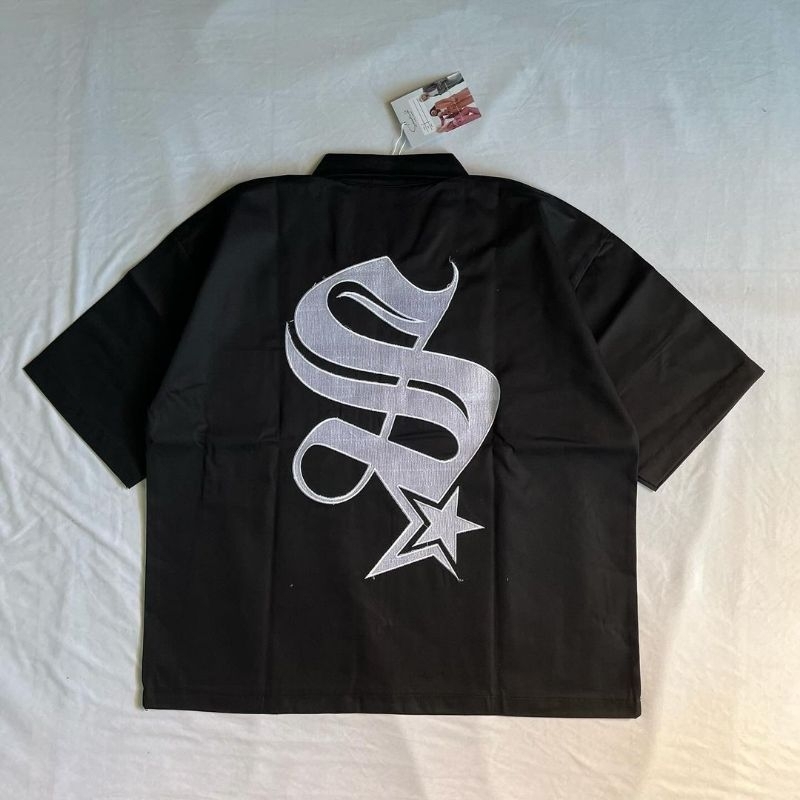 WORKSHIRT HALFZIPPER HITAM STARBOY/Y2K FULL BORDIR OVERSIZE SEMI CROP by sisasatu.id