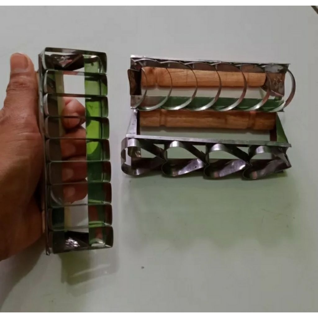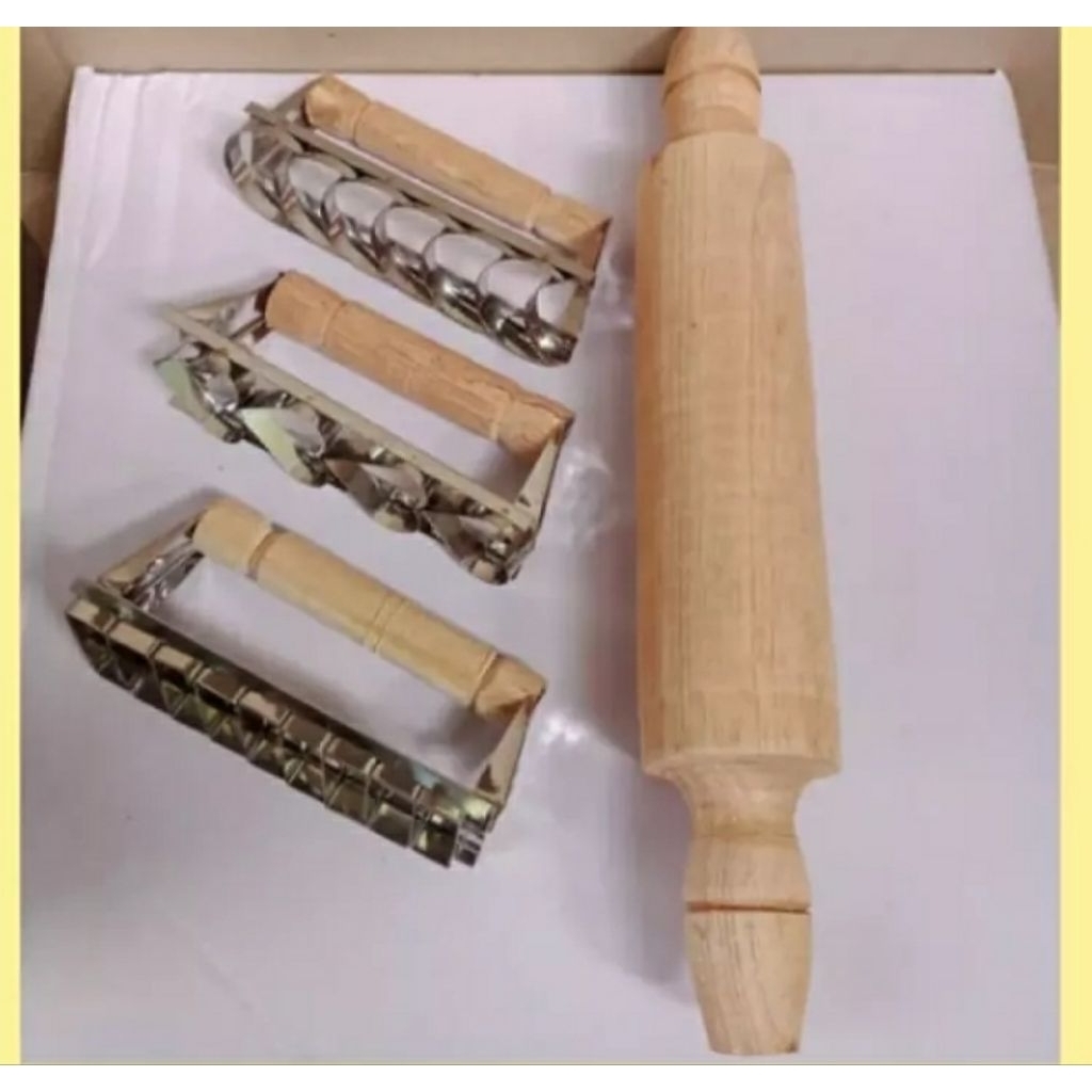 1 Set Rolpin & 3 Pcs Cetakan Nastar Bentuk Love Sabit Kotak Panjang / Rolingpin Kayu Dan Cetakan Kuker Kue Kering Kastangel Berbagai Motif