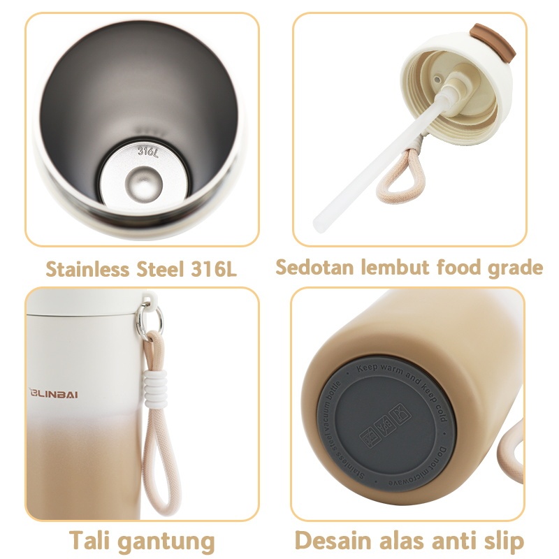 Housebrand tumbler LINBAI Flask 550ML Coffee Mug with Handle Rope Thermos Cup Vuum with Lid Hot and Cold 316 Stainless S