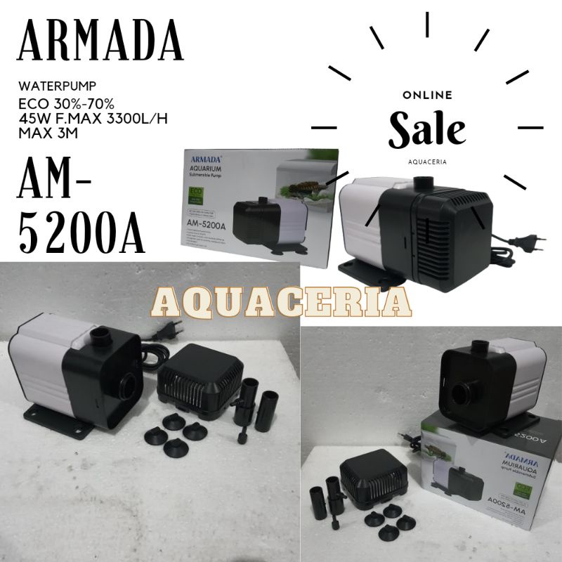 Mesin celup Aquarium Kolam ARMADA AM 5200 A Waterpump aquarium Kolam 2M-3M