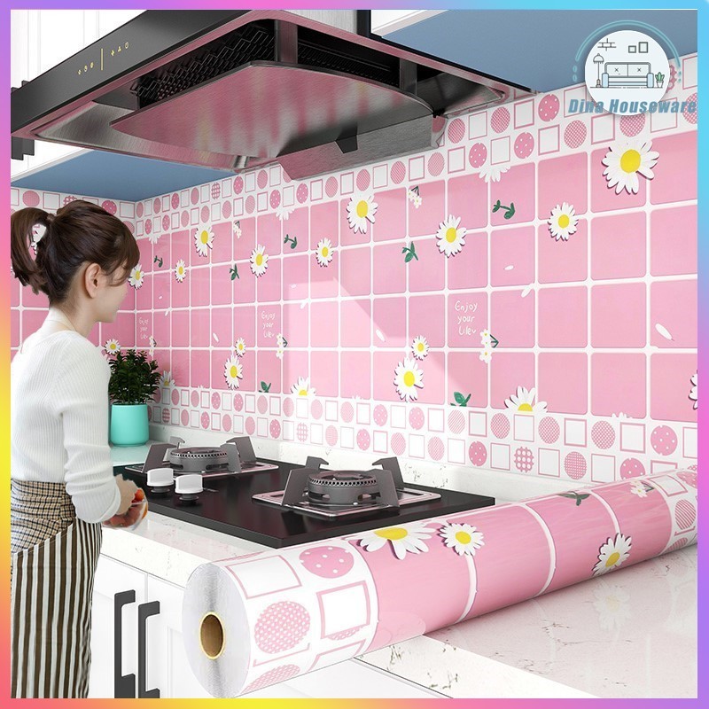 Wallpaper Stiker Dinding Ukuran 60CM x 3M Anti Minyak Air Untuk Kamar Mandi Dapur Dan Wallpaper
