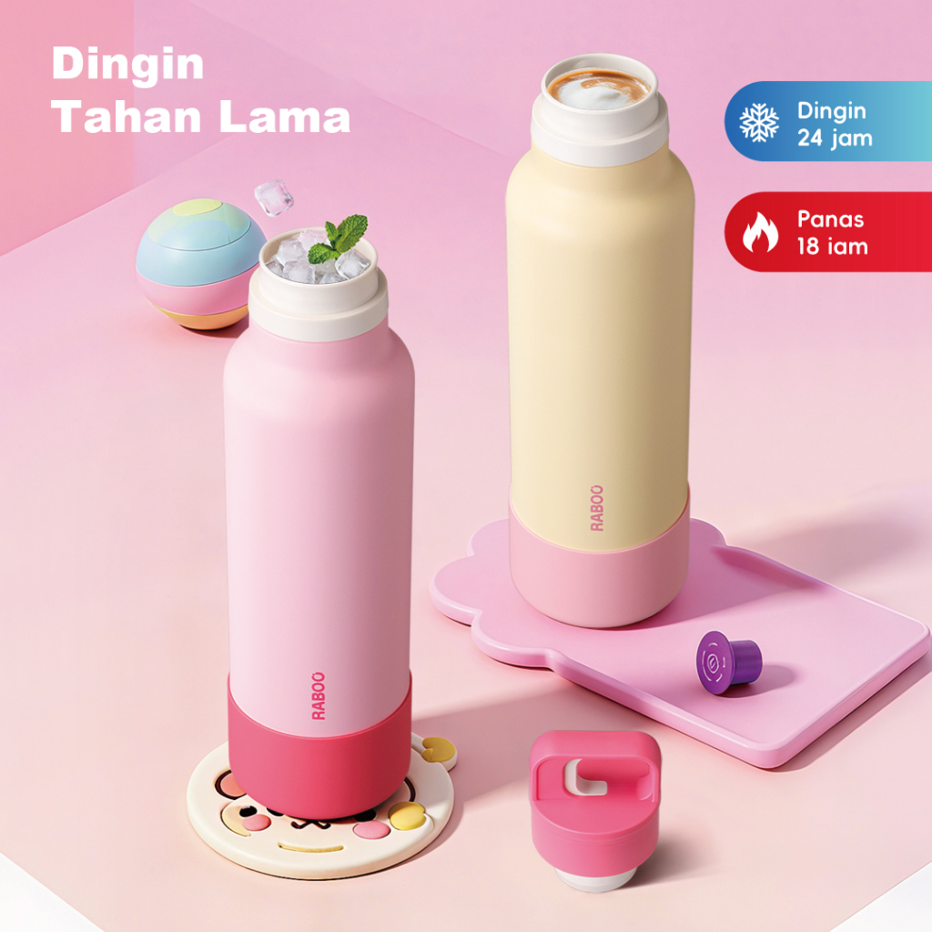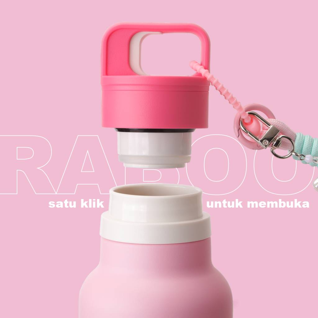 Housebrand tumbler RABOO Tumbler Olahraga Maron 750ML , Satu-Klik untuk Buka, SUS 316 Stainless, Botol Termos Trendi dan