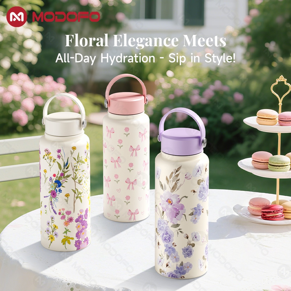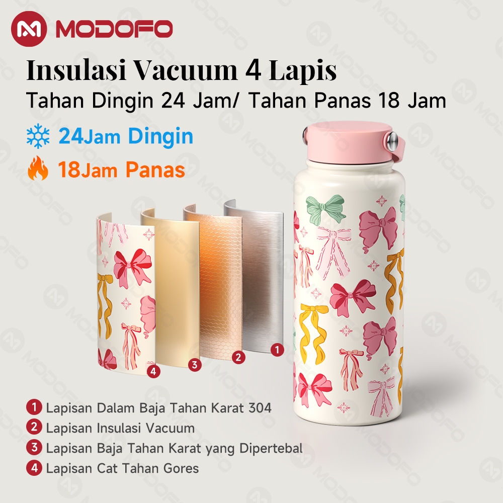 Housebrand tumbler MODOFO Tumbler Stainless Botol Minum Aesthetic 1 Liter Lucu Tumbler Tahan Panas Dingin 24 Jam Natal