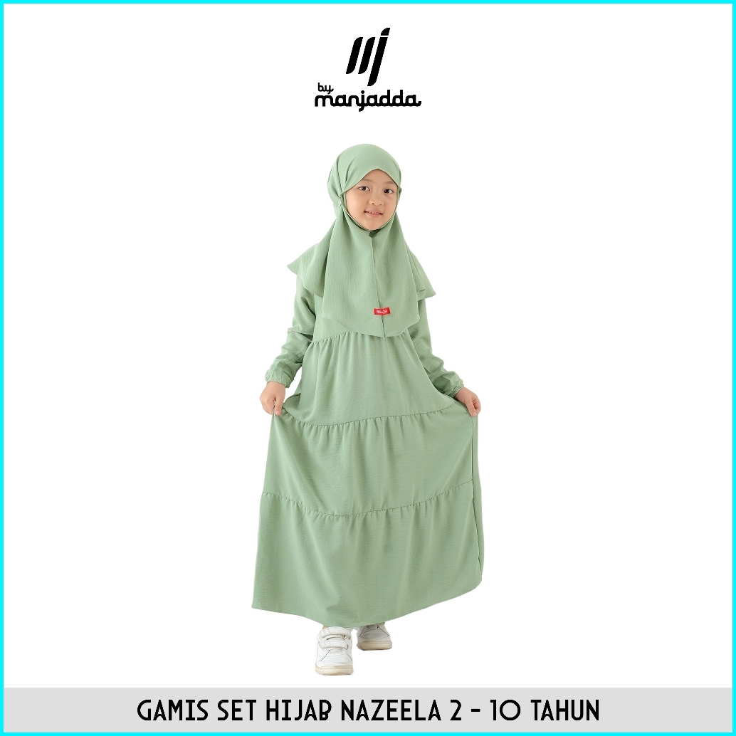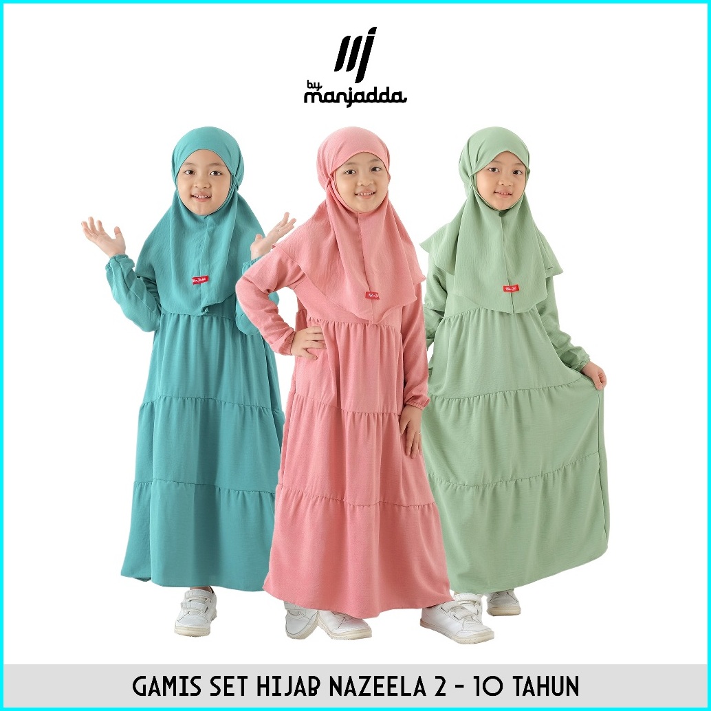 Manjadda - Nazeela Set Gamis Hijab Anak Perempuan 1- 10 Thn Set Gamis Putih Anak Haji Umroh Manasik