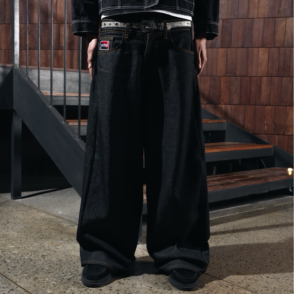 Satisfaction Baggy Jeans | Raw Denim Tracer Black