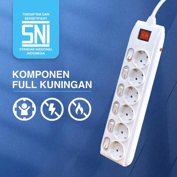 Kenmaster Stop Kontak 6 Lubang F-66 SWITCH - 4 Meter / Stopkontak / Colokan Listrik / Colokan Putih - STKA186