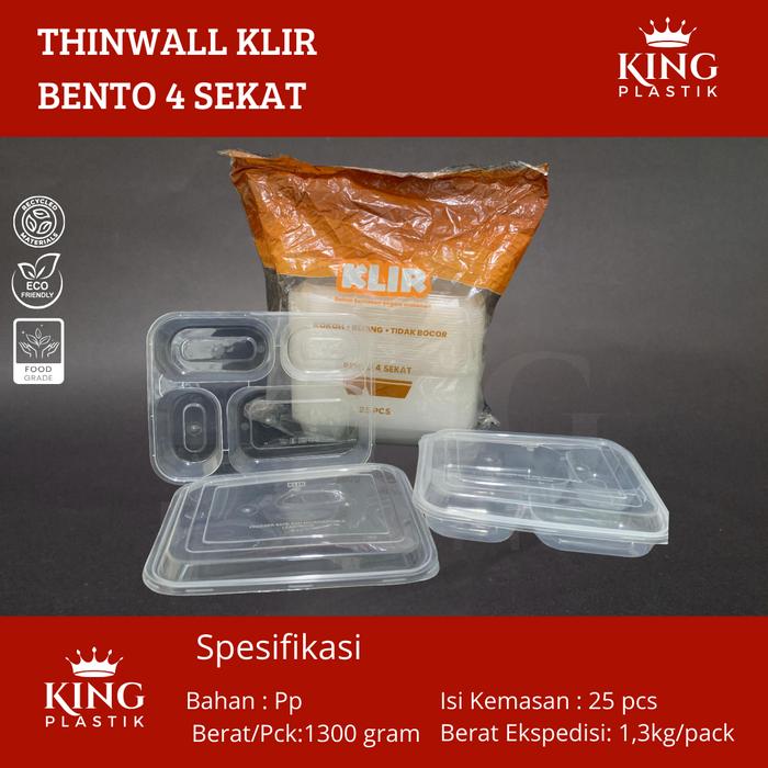 Thinwall Klir Bento / Kotak Makan BENTO 4 sekat isi 25pcs / Kotak Makan Plastik / Thinwall Bento Set Kitchenware