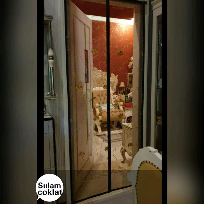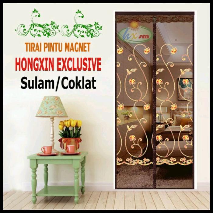 Tirai Pintu Magnet Anti Nyamuk Hongxin Minimslis Motif Sulam Timbul. - Coklat