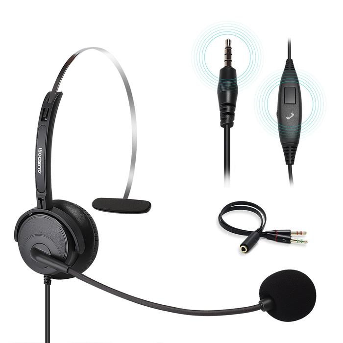 Ausdom Phone Headset with Noise Cancelling Mic Office Business - BH01 - BLACK