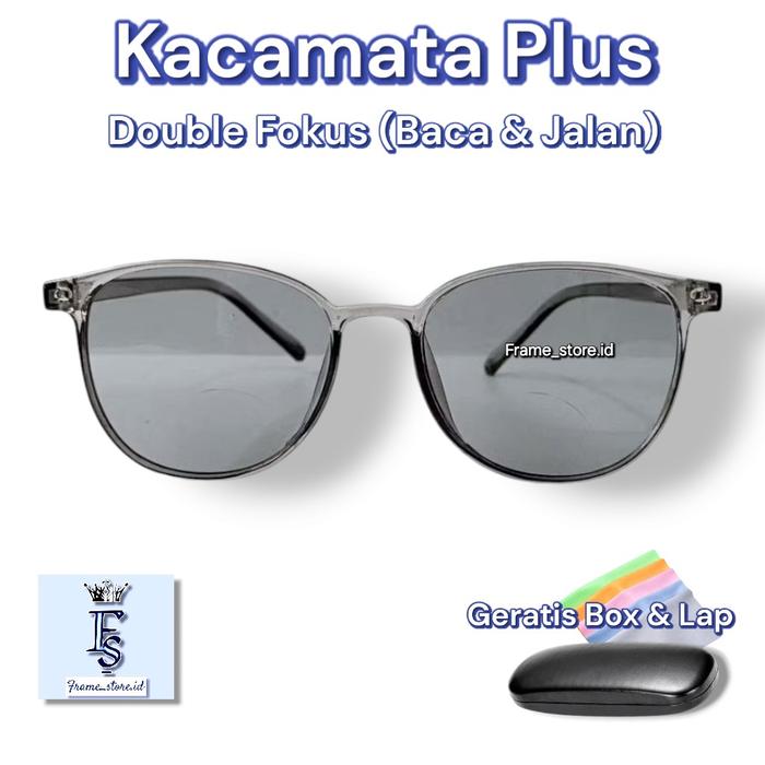 Kacamata Double Fokus Plus Lensa Anti Radiasi untuk Baca dan Jalan Unisex Frame Pria dan Wanita Abu-Abu - Grey +1.00