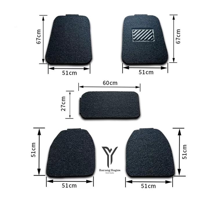 Karpet Mobil Mie Bihun Universal / Umum Cocok Untuk Semua Mobil 1 Set=5 Bagian car Karet Sporty - HITAM