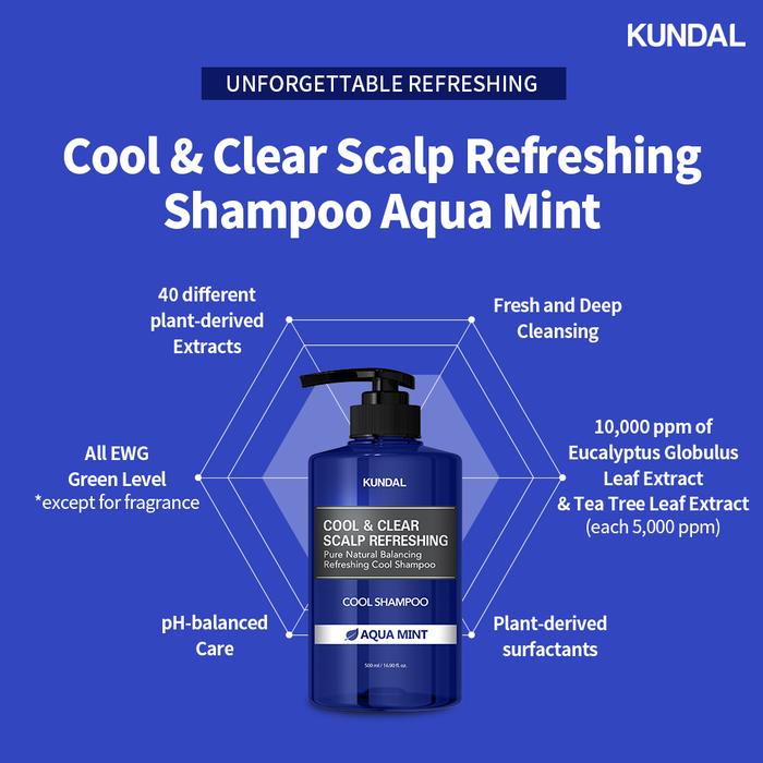 KUNDAL Cool and Clear Scalp Refreshing Shampoo Aqua Mint (Made in Korea) 500ml - Aqua Mint
