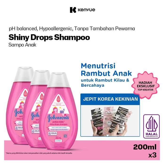 [Exclusive Top Creators] JOHNSON'S Active Kids Shiny Drops Shampoo ISI 3 FREE Jepitan - Sampo Anak 200 ml