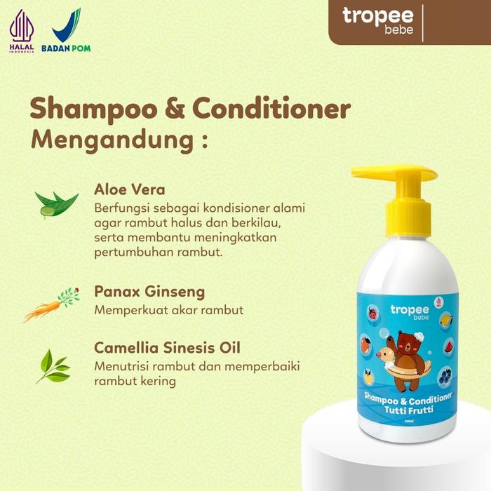 Tropee Bebe Shampoo & Conditioner Sampo Kondisioner Bayi dan Anak Free SLS Anti Lepek 250ml