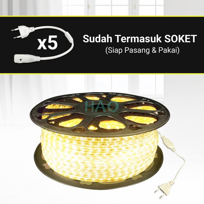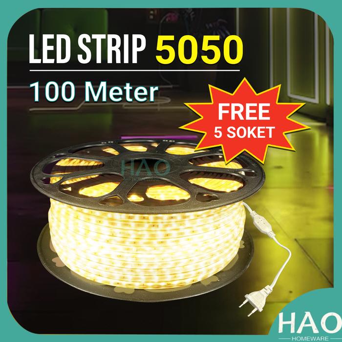 [HAO] LAMPU LED STRIP 5050 LAMPU HIAS / FREE 5 SOKET / PAKET LAMPU LED STRIP LENGKAP TINGGAL COLOK - Putih 100 Meter