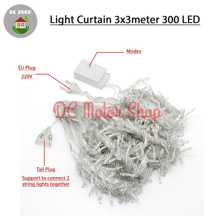 Lampu Natal Tirai daylight 300 LED 3x3 m Curtain Light Lamp waterproof - White