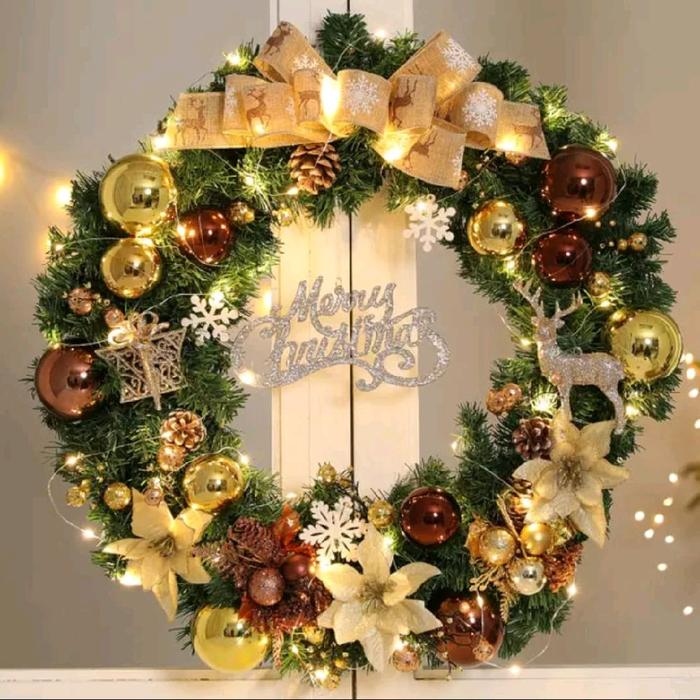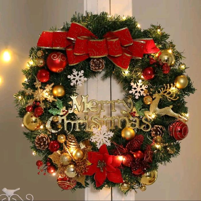 Krans Bunga Natal 40cm Garland Pintu Premium Dengan Lampu LED - 40cm Garland Model A