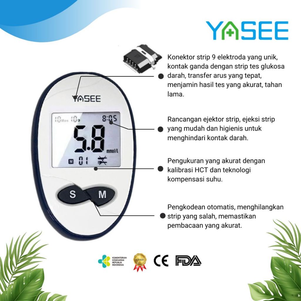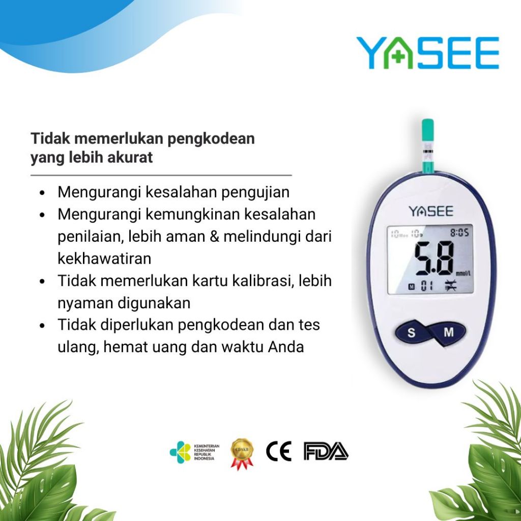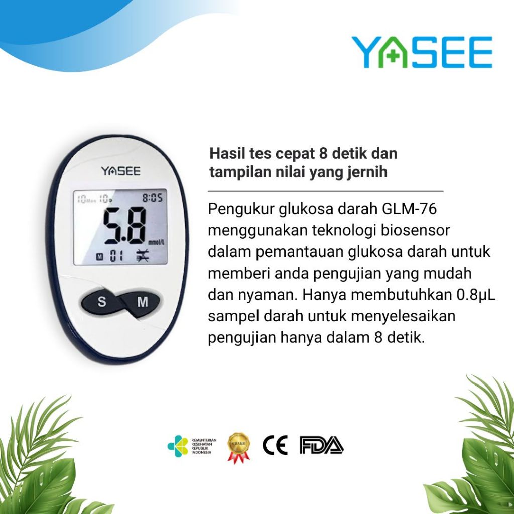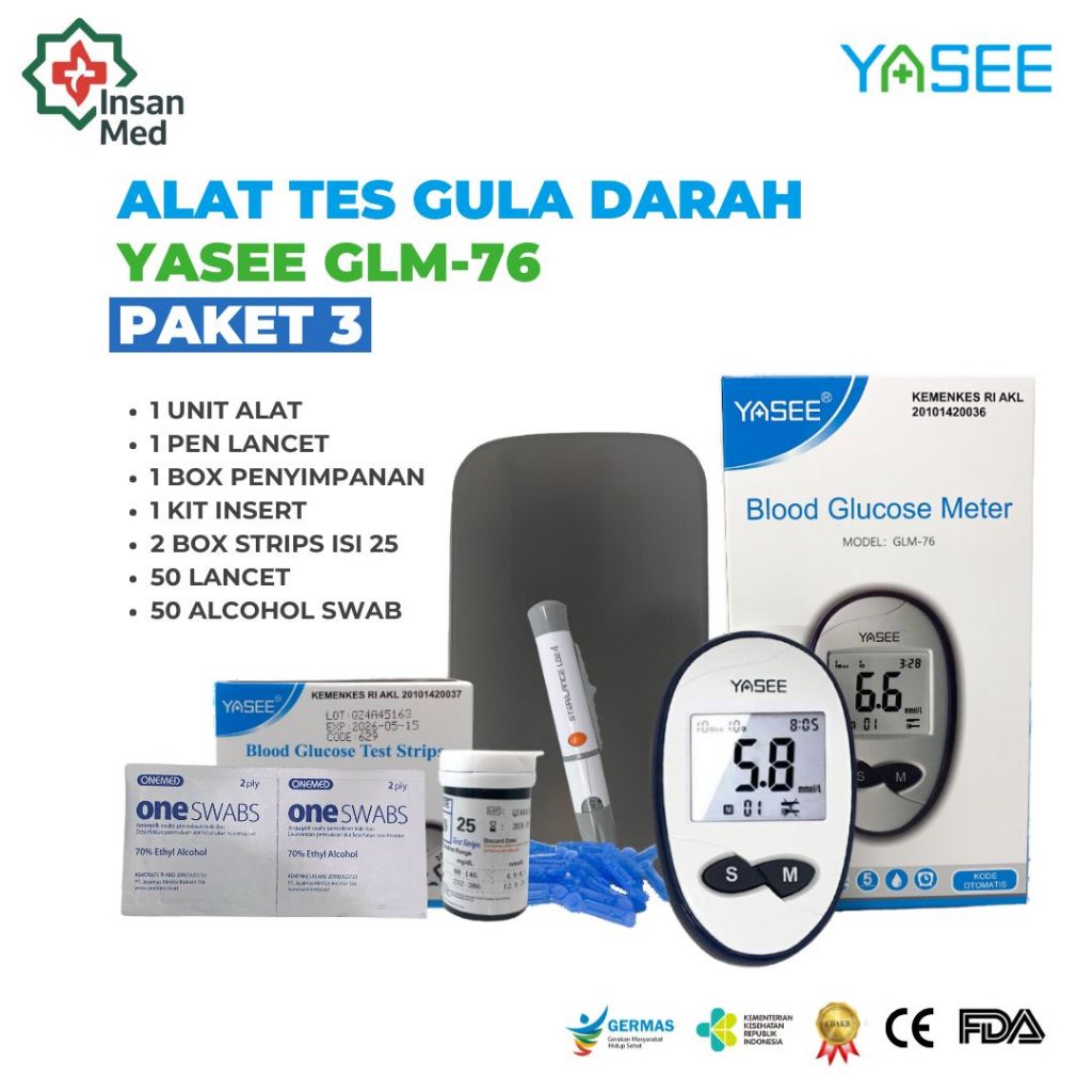 Alat Cek Gula Darah Yasee GLM-76 Paket 50 Strip – Garansi Seumur Hidup