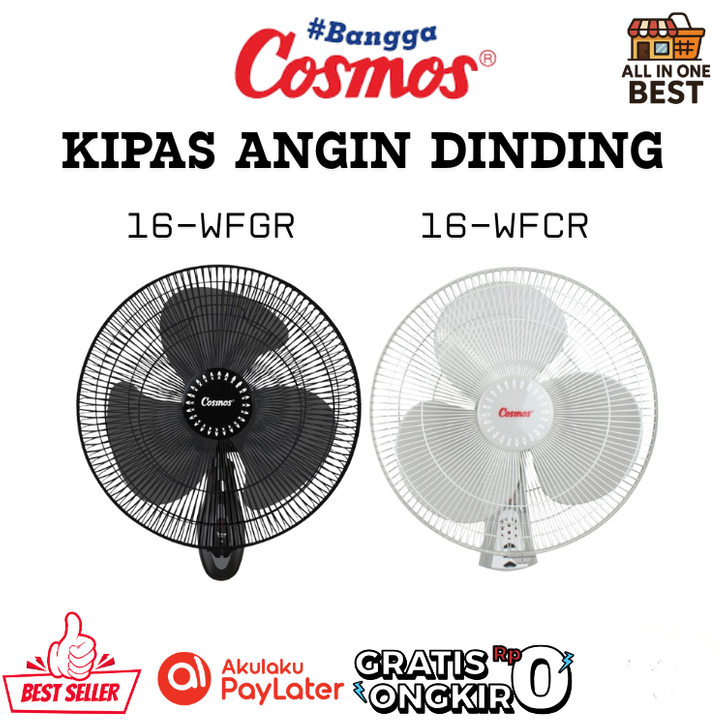 Kipas Angin Dinding Cosmos Original Kipas Angin Wall Fan 16 - WFGR Remote Ukuran 16 Inch Low Watt Termurah Best Seller