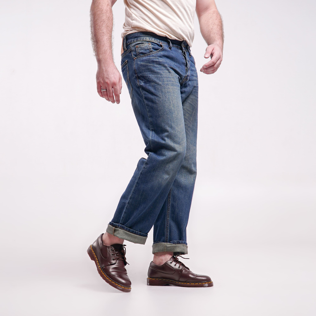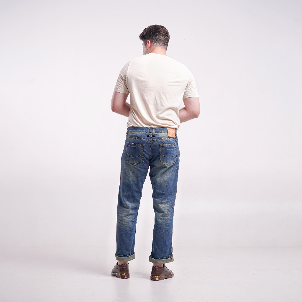 Distin Denim Wash Denim Jeans Deep Blue Brown Slimstraight