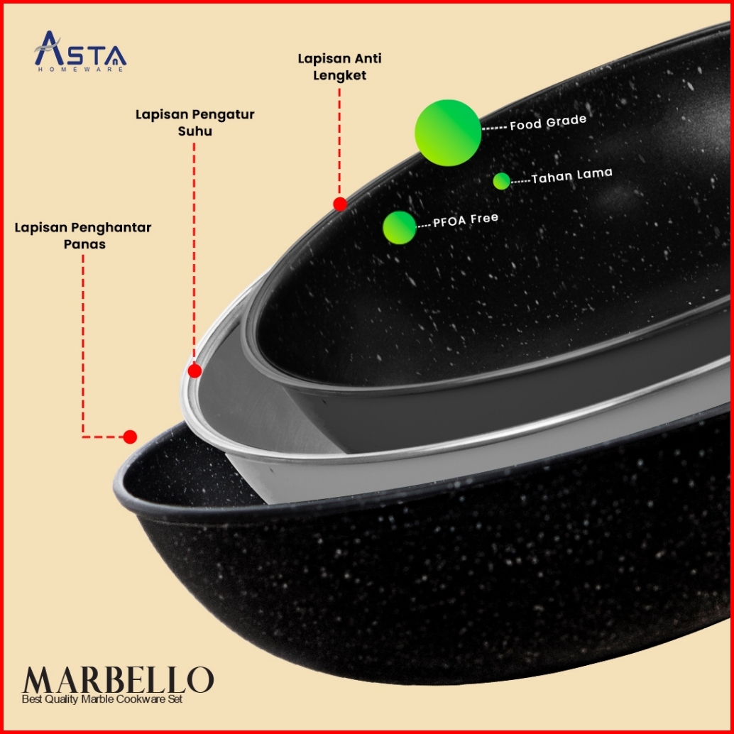 Asta Panci Set Marbello Lengkap 7 Pcs Anti Lengket Kitchen Set Wajan Anti Lengket Cookware