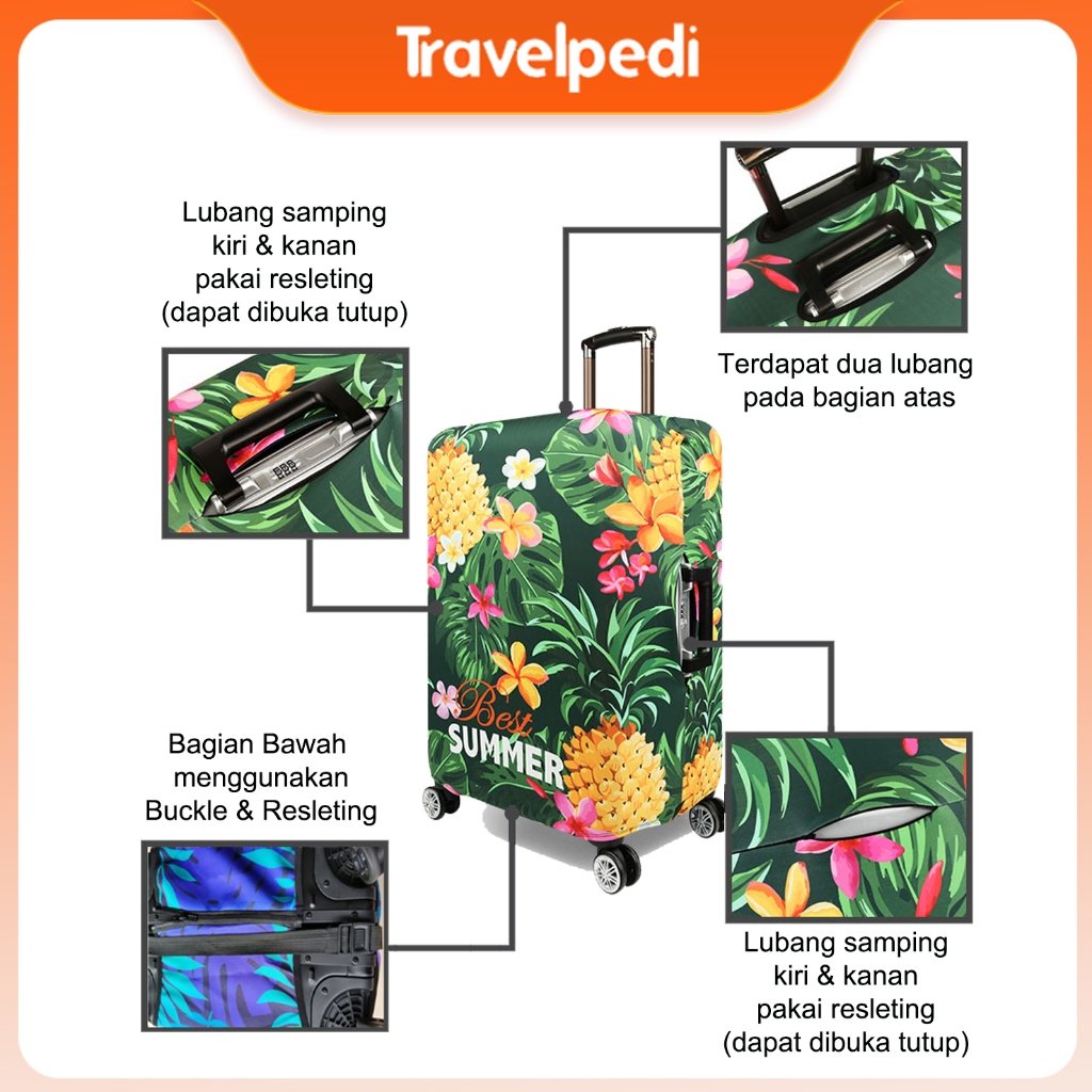 Sarung Pelindung Koper Luggage Cover Elastis Bahan Tebel Handle Samping Resleting Keepcalm Cat Coffe