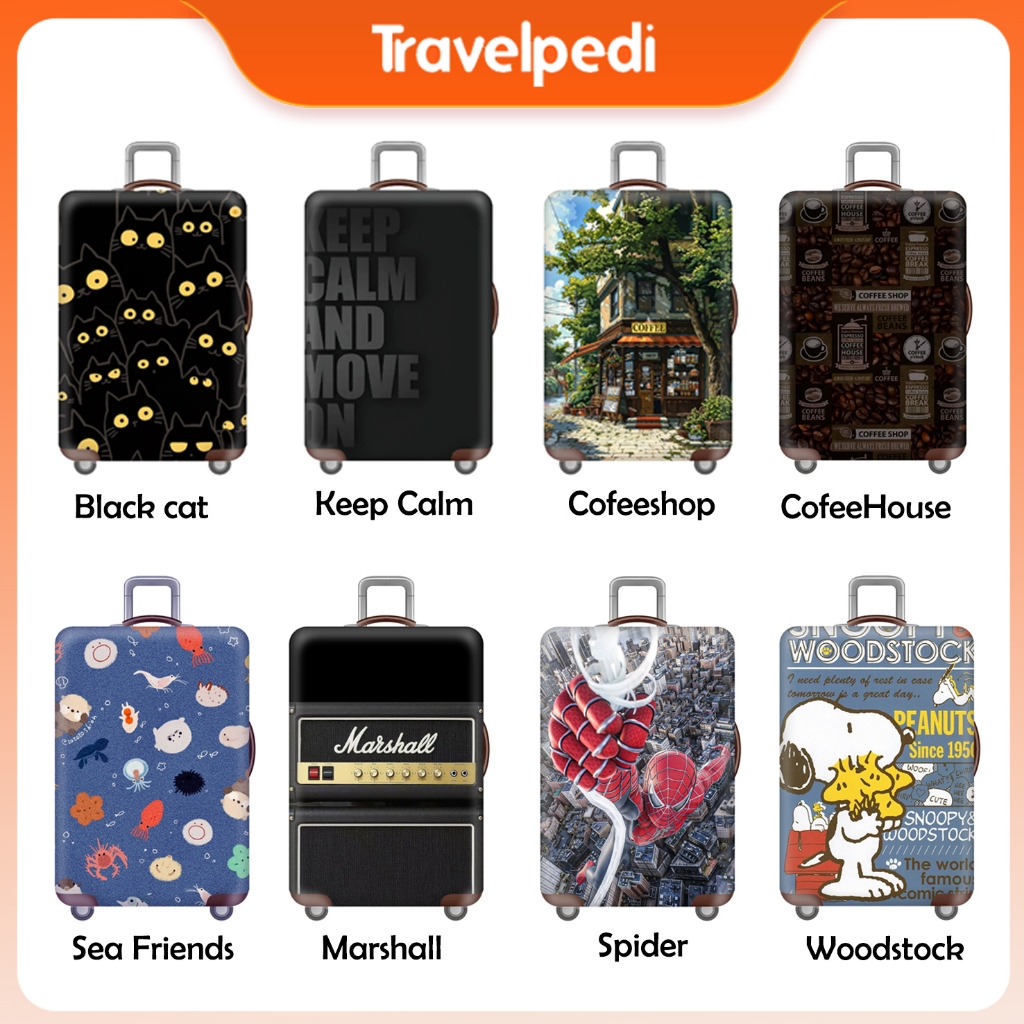 Sarung Pelindung Koper Luggage Cover Elastis Bahan Tebel Handle Samping Resleting Keepcalm Cat Coffe