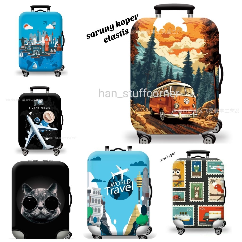 Hf215 Cover sarung pelindung koper luggage bag kain spandek elastis motif cantik lucu unik