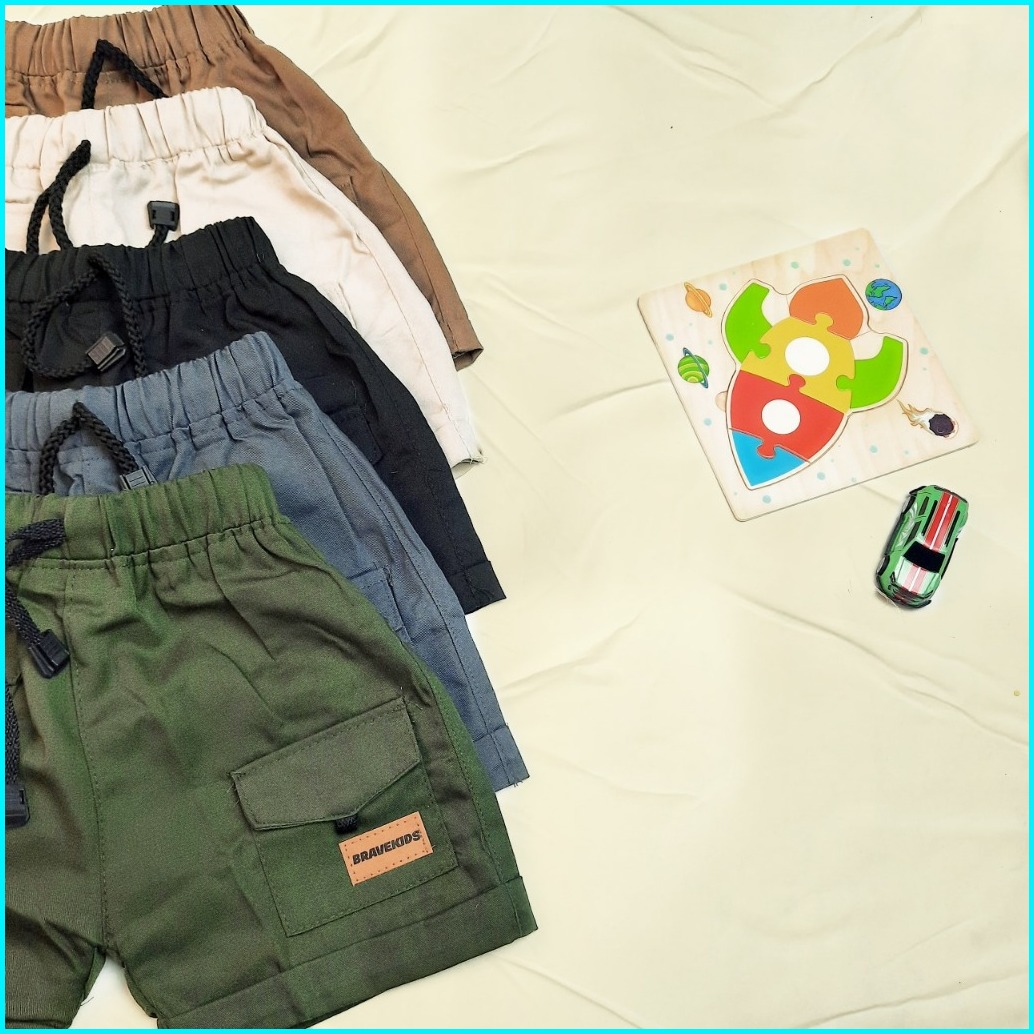 Bravekids Fashion - V2 Cargo Broadshort Anak Celana Cargo Anak 1-5 Tahun Kids Katun Twill Union Kuat Unik Tidak Luntur