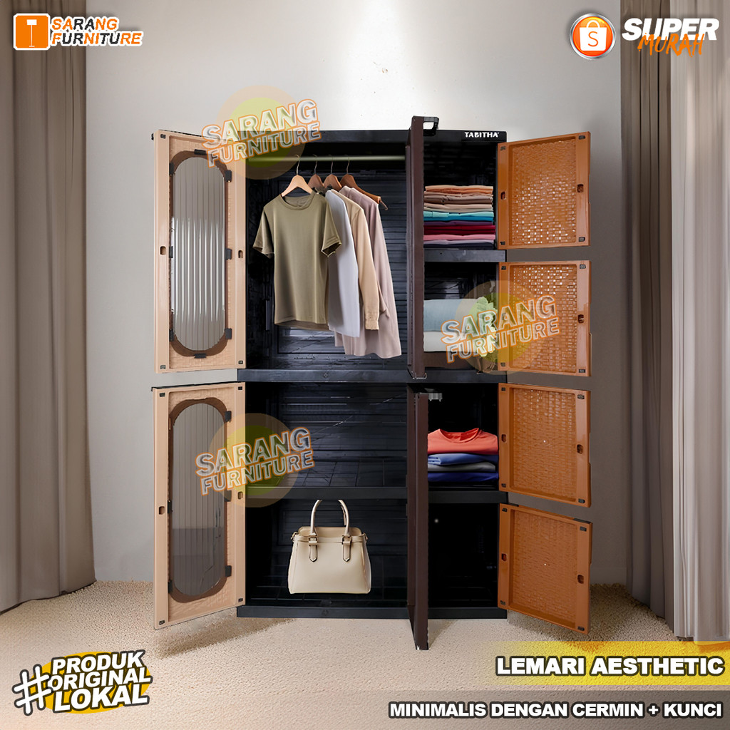 Lemari Pakaian Plastik Lemari Tabitha Nova LSPK3 Lemari Aesthetic Lemari Pakaian Cermin Dengan Laci