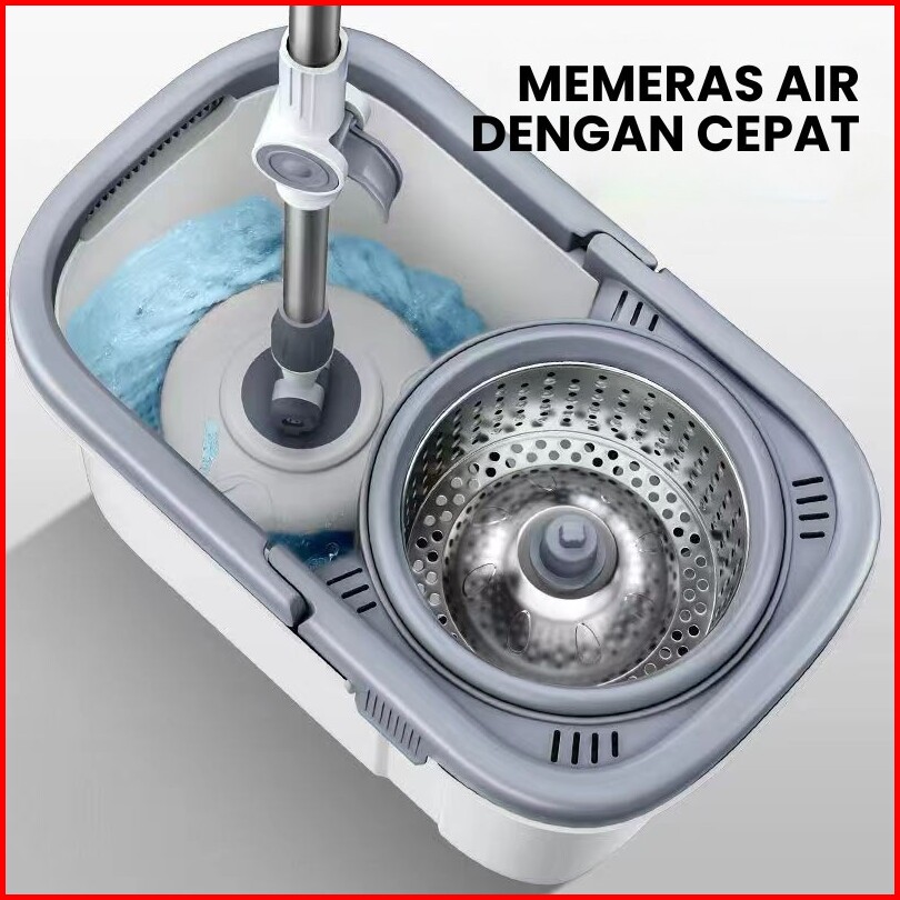 Paus Biru Medan - Set Alat Pel Lantai Stainless Super Mop Dengan Ember Pencuci Putar 360