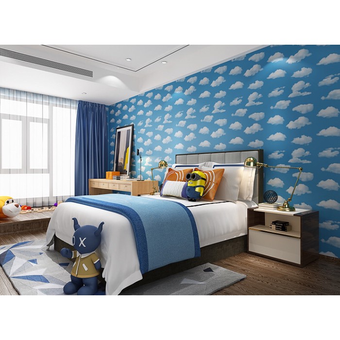 Wallpaper Dinding Kamar Tidur Sticker Walpaper Stiker Dekorasi Rumah Motif Awan Biru Wps 184