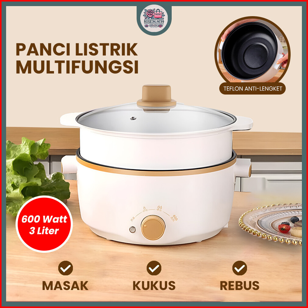 Ro Panci Listrik Jumbo 3l Besar Dengan Kukusan Low Watt Streamer Putih 24cm