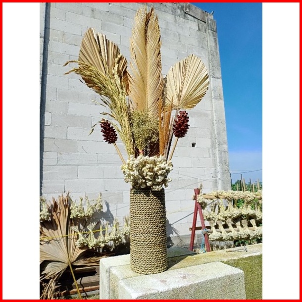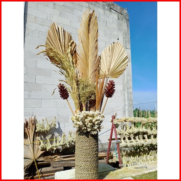 Paket Bunga Kering Pot Mendong Daun Palem Kering Rustic Aesthetic Hampers Daun Kering Rustic Dekorasi Rustic