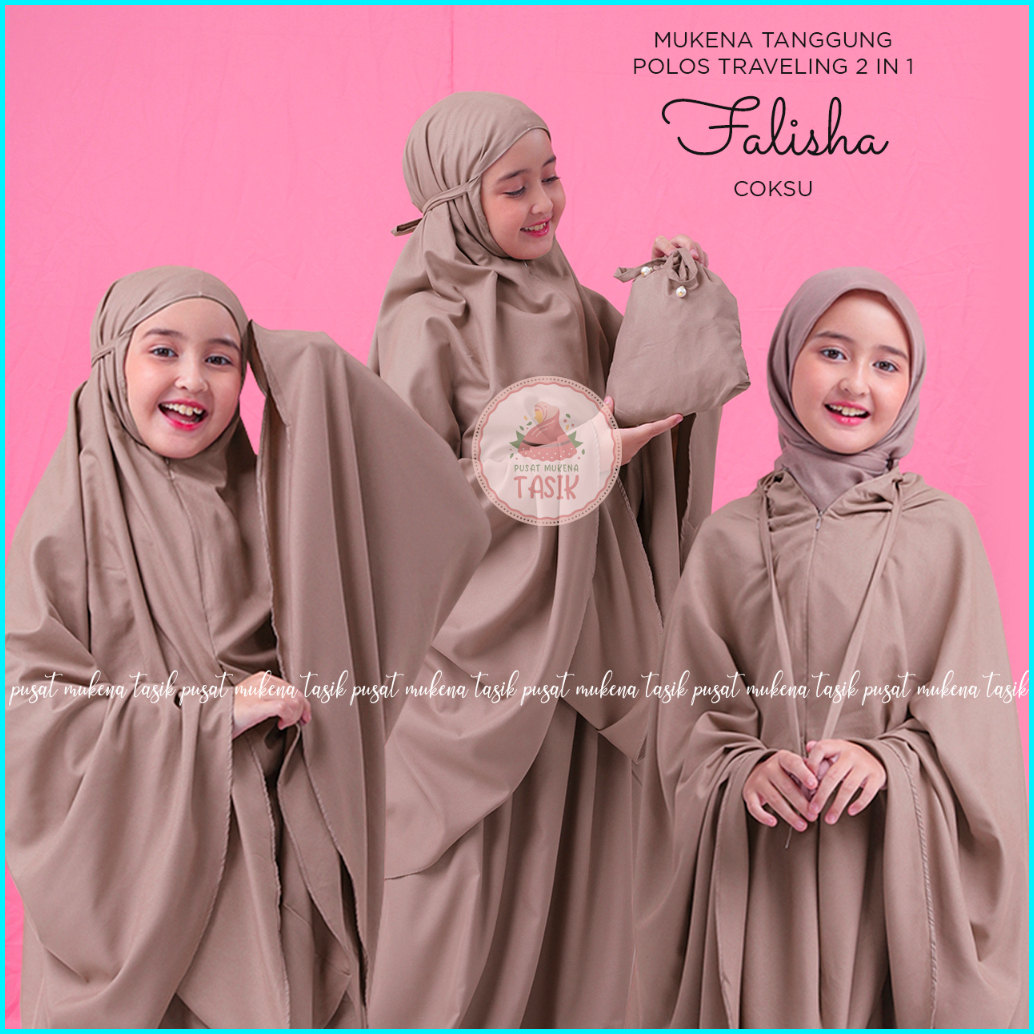 Pusat Mukena Tasik - Mukena Anak Tanggung Traveling Polos Falisha 2 In 1 Arunika 2 In 1 Katun Premium