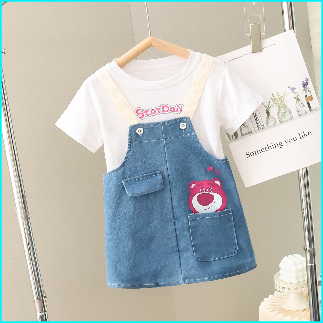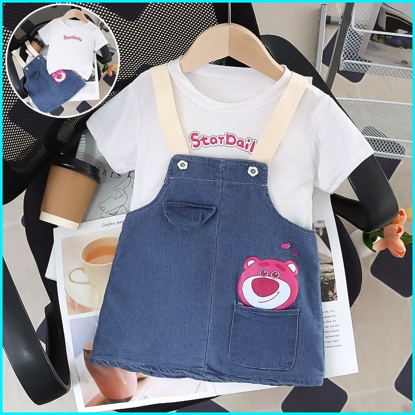 Setelan Anak Perempuan Baju Anak Perempuan Overall Jeans Set 0-5 Tahun