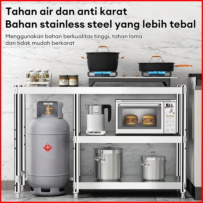 Xuxu Meja Kompor Stainless Steel Meja Kompor 2 Tungku Rak Oven Rak Microwave Rak Dapur Susun