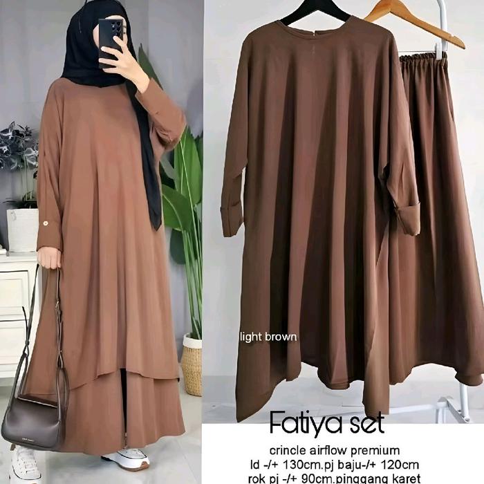 FATIYA LONG SET ROK ONESET TUNIK CRINGKLE AIRFLOW SETELAN ABAYA TERBARU MUSLIMAH CELANA PANJANG DEWASA BAJU WANITA CRINKLE - MILOCOKLAT TUA