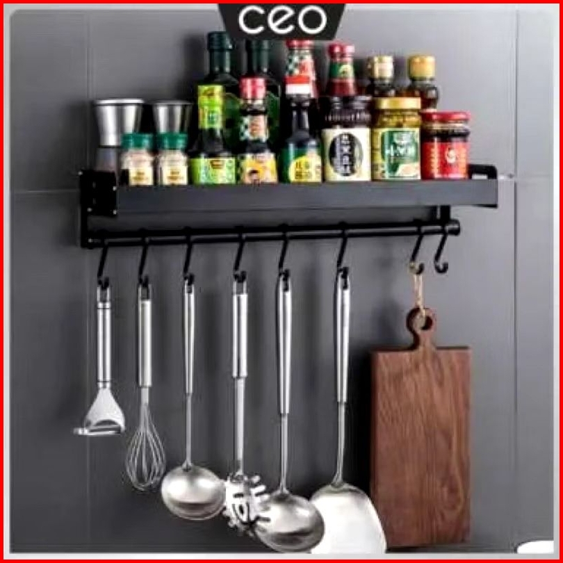 Gantungan Panci Dapur Dan 8 Kapstok Yang Bisa Geser Bahan Almunium 2 Palang Anti Karat Rak Bumbu Dapur