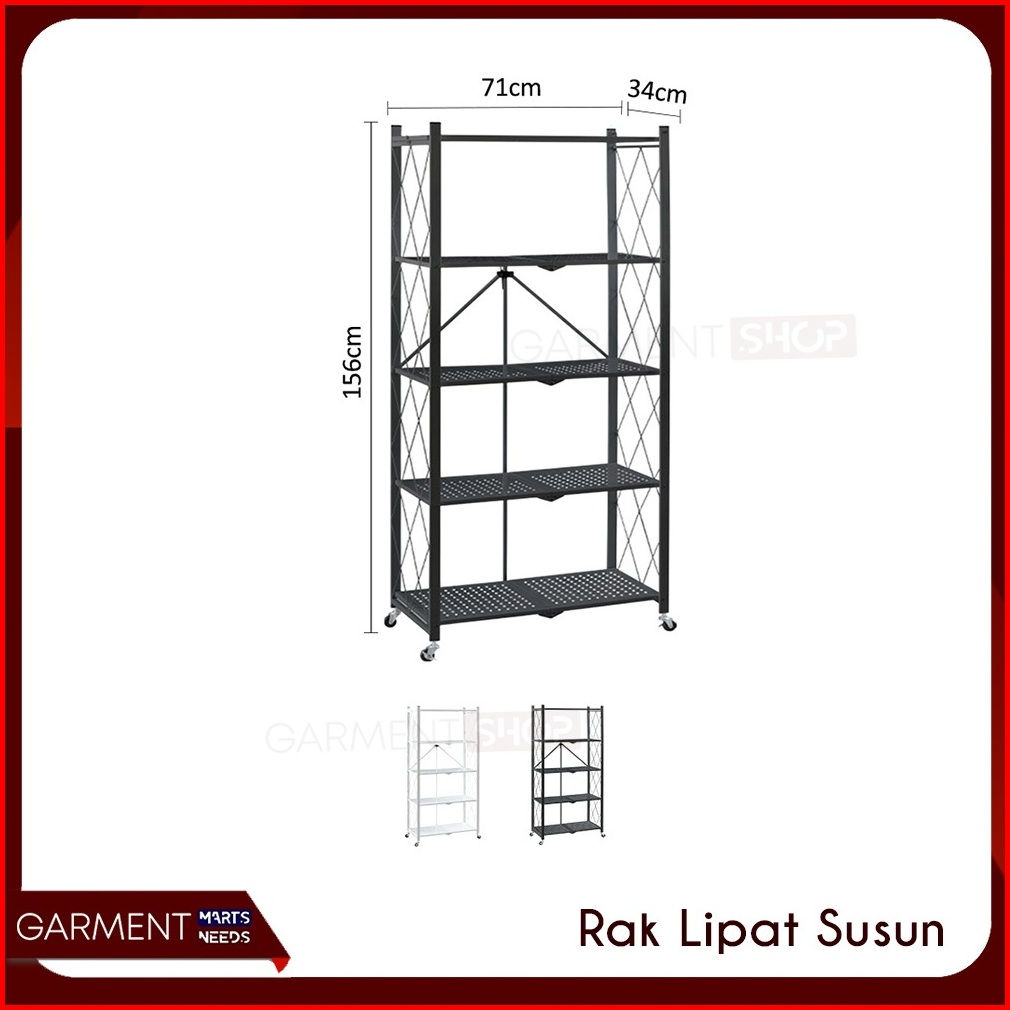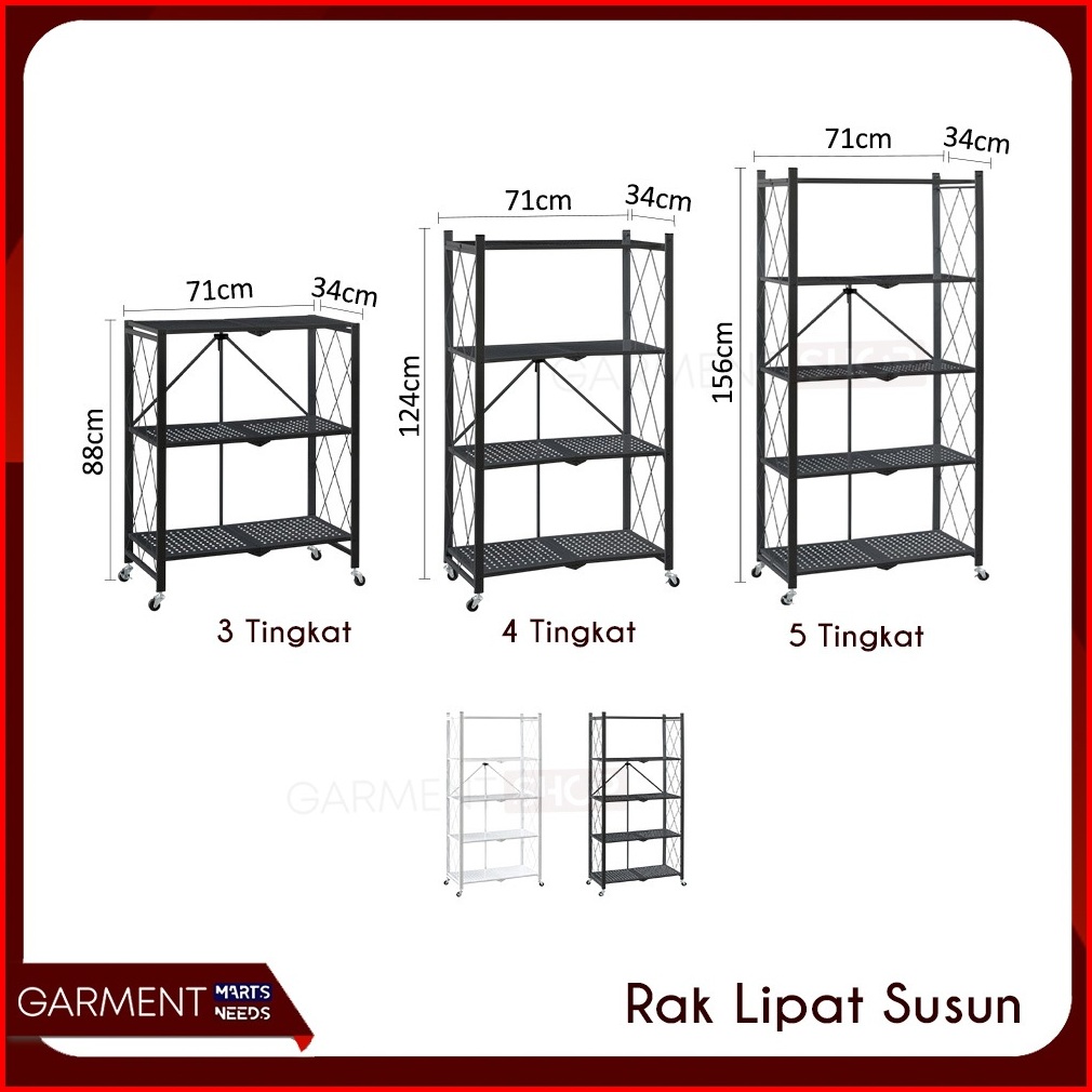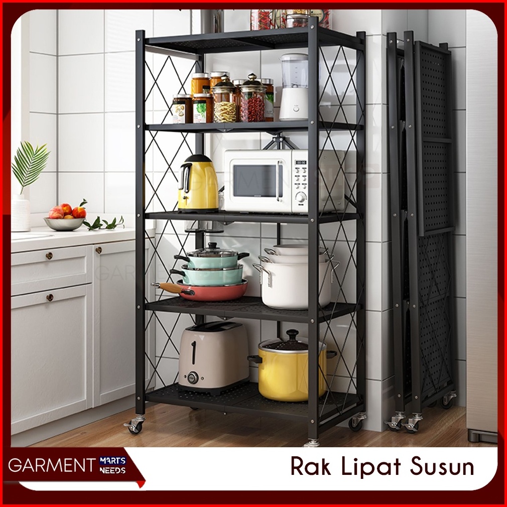 Rak Dapur Lipat Serbaguna Tanpa Mur Baut 3 4 5 Susun Stainless Steel Rumah Ringkas Praktis Hitam Besi Kuat Kokoh