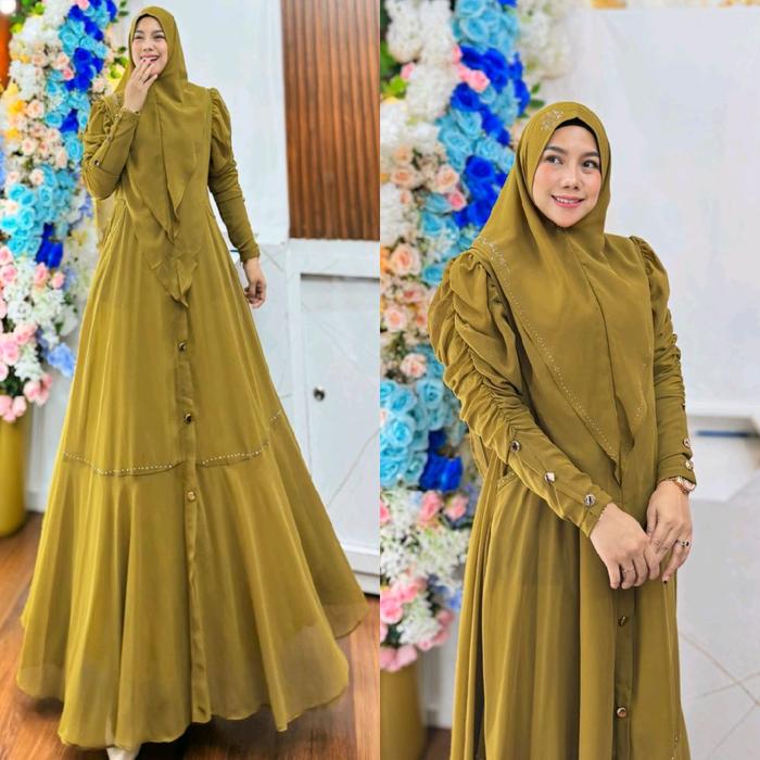 INARA SERIES BY HUMAIRA SYARI GAMIS CERUTY PREMIUM SET JILBAB KHIMAR BUSUI WUDHU FRIENDLY TERMURAH KEKINIAN DRESS MEWAH BAJU LEBARAN - BLACK, LD 110